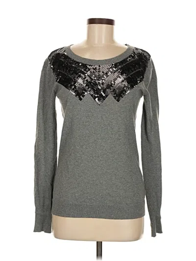 Express Pullover Sweater, Size: Medium. Item Details: Silver, Metallic Pattern, Scoop Neck, Long Sleeve, Sequins & Rhinestones, Women's Tops, Cotton/Nylon