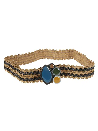 EXQUISITE J Striped Raffia Belt In Multi