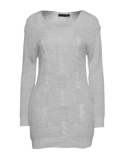knitted, lightweight knit, no appliqués, solid color, round collar, long sleeves, no pockets , Color: Light grey , Size: L/XL