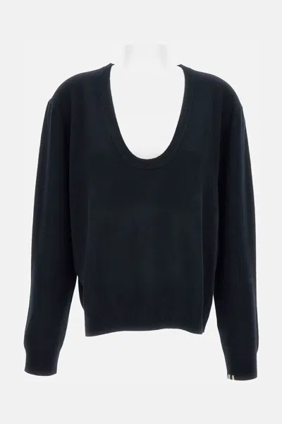 Wool blend deep V-neck sweater. Relaxed fit, black