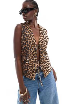 EXTRO & VERT Tie Front Vest In Leopard-multi
