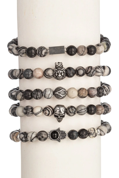 This agate beaded bracelet set features a multi bracelet look that boast titanium charms. The special coloration on these beads makes this bracelet set a must have addition to your current jewelry set!Product Details - Agate beads Titanium charms 3" adjustable length Clasp - stretch band