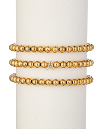 EYE CANDY LA Luxe Collection Titanium Cz 3pc Initial Stretch Bracelet Set (a-z)