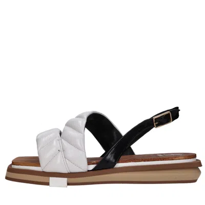 Leather sandals. Rubber outsole. Leather and wood inner upper. Insole with small imperfections.
