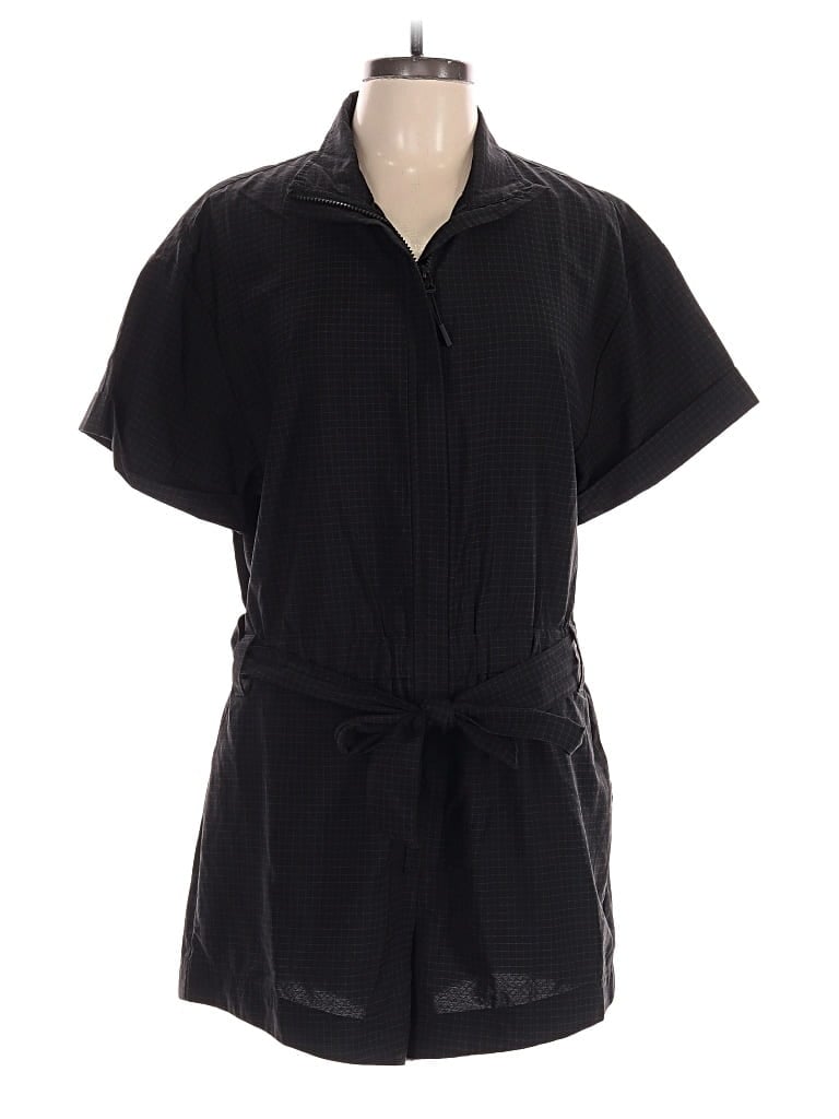 Fabletics Romper, Size: Large. Item Details: Black, Houndstooth Pattern, Collared Neckline, Short Sleeve, Zippers, Women's Dresses