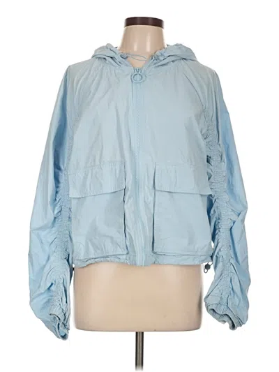 Fabletics Windbreaker, Size: Large. Item Details: Blue, Solid Pattern, Hooded Jacket, Women's Jackets & Outerwear