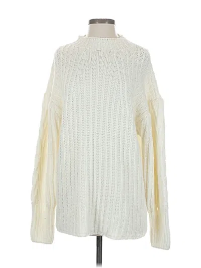 Fab'rik Pullover Sweater, Size: Small. Item Details: Ivory, Mock Neckline, Long Sleeve, Ruffles, Women's Tops, Acrylic/Nylon/Polyester