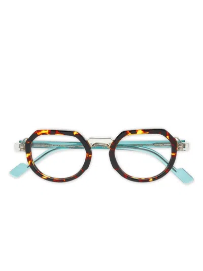 brown geometric frame clear nose pads turquoise arms straight tips All glasses from FARFETCH are sold as non-prescription frames. These glasses come with a protective case.