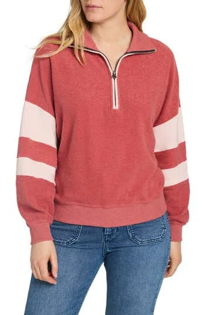 Wide stripes lend sporty style to a grab-and-go fleece pullover that's sure to keep you warm from game days to cabin trips. Quarter-zip closure Spread collar Ribbed cuffs and hem 60% cotton, 20% recycled polyester, 20% viscose Machine wash, tumble dry Imported