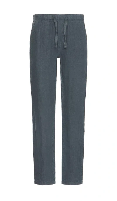 Faherty Linen Drawstring Pants in Navy. - size S (also in L, M, XL/1X) Faherty Linen Drawstring Pants in Navy. - size S (also in L, M, XL/1X) 100% linen. Machine wash. Elastic waistband and drawstring. 4-pocket design. Midweight linen fabric. 18 at the knee narrows to 14 at the leg opening. FAHR-MP16. MBU2412. Since its inception, Faherty has drawn inspiration from all-day surf sessions, road trips, and beach bonfires. Founded by Alex, Mike, and Kerry, it thrives on a family-led ethos focused on top-notch products, constant improvement, and a commitment to positivity. A decade down the line, their dream-and their family-continues to expand.