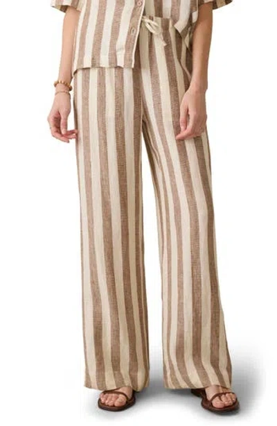 FAHERTY Palma Linen Stripe Drawstring Pants In Brown