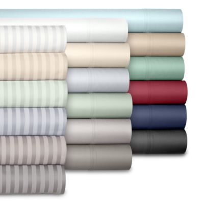 Add luxurious softness to your room with the Brookline sheet set from Fairfield Square Collection, featuring a smooth sateen weave, a relaxed solid ground and self-piped hemming on the flat sheet and pillowcases.