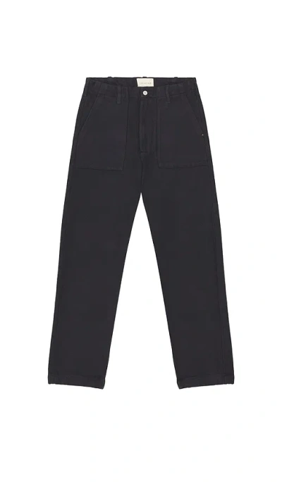 Far Afield Coupe Trouser in Navy. Size 34. Also in 30, 32, 36. Far Afield Coupe Trouser in Navy. Size 30, 32, 36. 100% cotton. Hand wash. Zip fly and button closure. 4-pocket styling. Midweight twill fabric. Opening measures approx 15. FAFI-MP2. AFTR149.