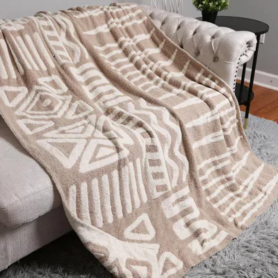 FASHNZFAB Aztec Patterned Reversible Throw Blanket In Neutral