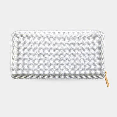 FASHNZFAB Bling Solid Zipper Wallet In Silver
