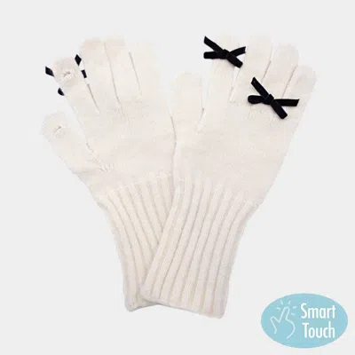 FASHNZFAB Bow Accent Ribbed Knit Smart Touch Gloves In White