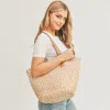 FASHNZFAB Braided Straw Tote Bag In Sand