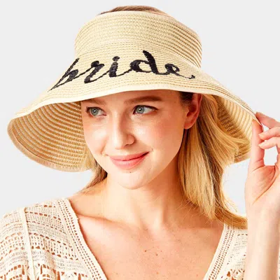 FASHNZFAB Bride Message Roll Up Foldable Visor Sun Hat In Sand