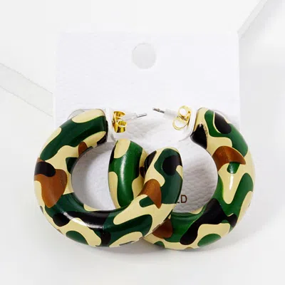 Camouflage Printed Wood Thick Hoop Earrings - Green In Multi