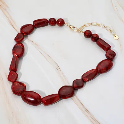 Chunky Marbled Resin Multi Shape Pebble Beaded Necklace In Pink