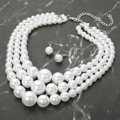Chunky Pearl Triple Layered Strand Necklace - Silver, White In Multi
