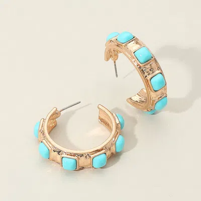 FASHNZFAB Chunky Stone Embellished Hoop Earrings In Blue