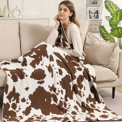 FASHNZFAB Cow Patterned Reversible Throw Blanket In Brown