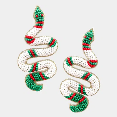 FASHNZFAB Felt Back Seed Beaded Snake Earrings In White