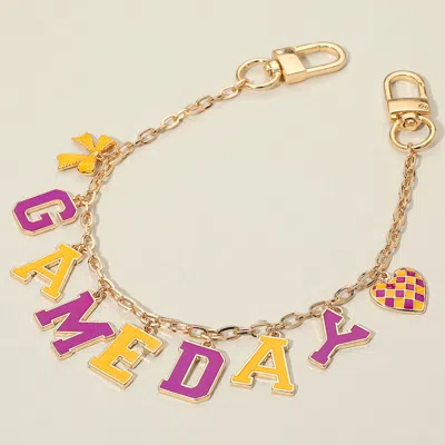 Size - 14" LCharm Size - 1.2" LFun and sporty bag charm featuring "Game Day" letter charms, a mini bow, and a heart accent. Perfect accessory to show team spirit by clipping onto purses, backpacks, or game-day totes. - Lead and Nickel Compliant
