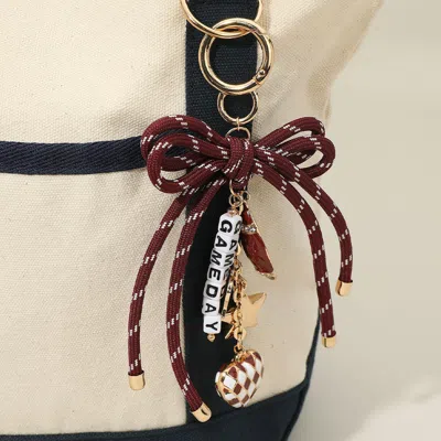 Football Themed Charm Game Day Message Beaded Rope Bow Accent Keychain Bag Charm In Multi