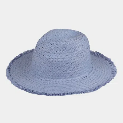 FASHNZFAB Frayed Solid Straw Sun Hat In Blue