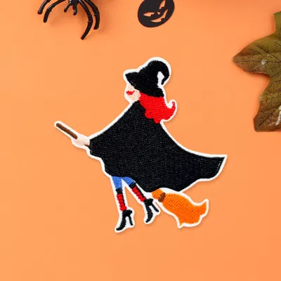 FASHNZFAB Halloween Witch Iron On Patch In Black