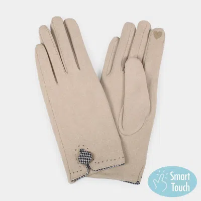 Houndstooth Patterned Button Touch Smart Gloves In Brown