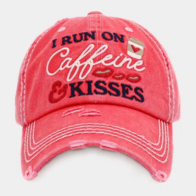 FASHNZFAB I Run On Caffeine And Kisses Vintage Baseball Cap In Pink