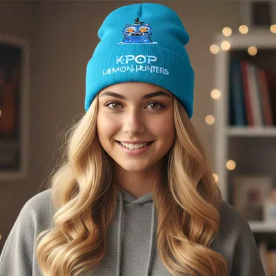 Kpop Demon Hunters Derpy Graphic Winter Beanie Hat In Blue