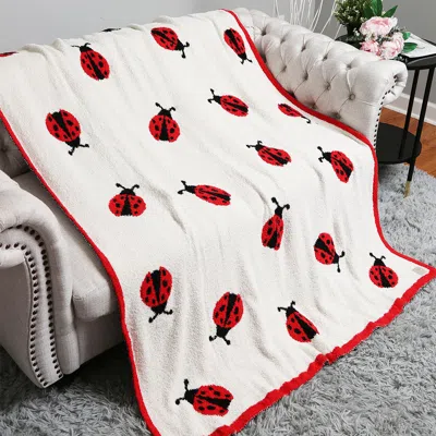 FASHNZFAB Ladybug Patterned Reversible Throw Blanket In White