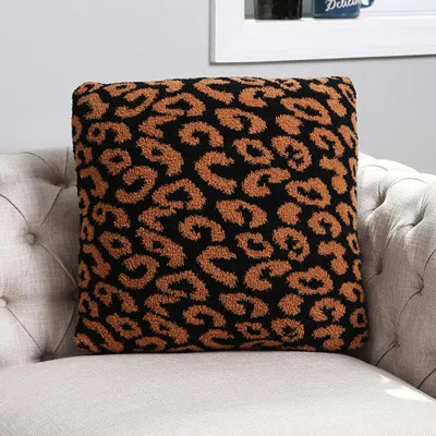 FASHNZFAB Leopard Patterned Cushion Cover In Brown