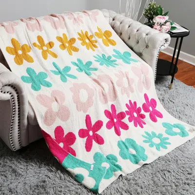 Mixed Flower Patterned Reversible Throw Blanket In Multi