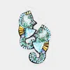 Multi Stone Sequin Seed Bead Seahorse Earrings In Blue