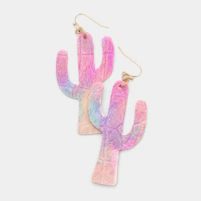 Ombre Genuine Leather Cactus Dangle Earrings - Multi In Pink
