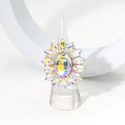 FASHNZFAB Oval Stone Centered Marquise Stone Cluster Round Stretch Ring In Silver