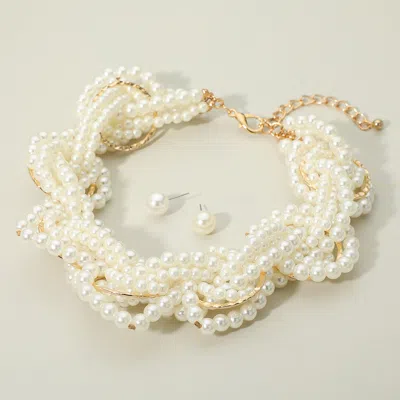 FASHNZFAB Pearl Beaded Twisted Multi Strand Statement Necklace In Neutral