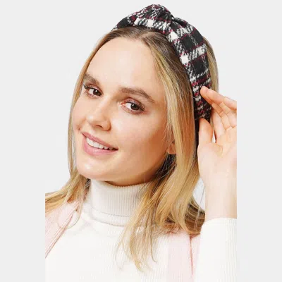 FASHNZFAB Plaid Check Patterned Knot Burnout Headband In Black