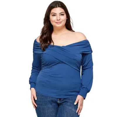Introducing our Plus Size Solid Wrap Dressy Top-a sophisticated and flattering addition to your wardrobe. Crafted from a blend of 95% polyester and 5% spandex, this top ensures both comfort and style. In a stunning Blue Stone hue, it features an off-the-shoulder neckline, ruched detail, cuffed long sleeves, and a hip-length body for a chic and fitted silhouette.Key Features - 1. Fabric - Experience the luxurious blend of 95% polyester and 5% spandex, offering the perfect combination of comfort a
