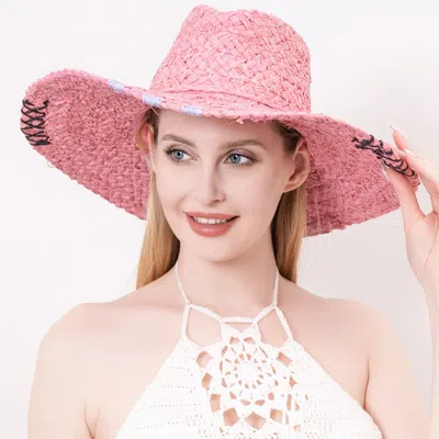 FASHNZFAB Raffia Pointed Straw Sun Hat In Pink