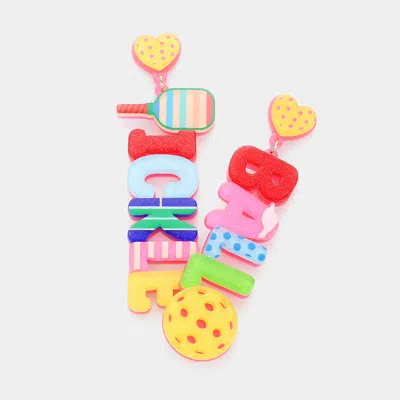 Resin Pickleball Message Dangle Earrings In Multi