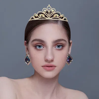 FASHNZFAB Round Stone Pointed Princess Tiara In Multi