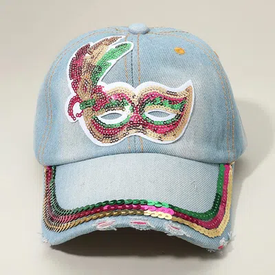 Sequin Mardi Gras Mask Patch Baseball Cap In Multi