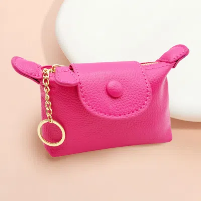 FASHNZFAB Solid Compact Keychain Mini Wallet Pouch Bag In Pink