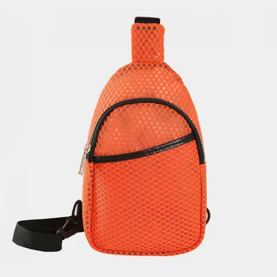 FASHNZFAB Solid Mesh Sling Bag In Orange